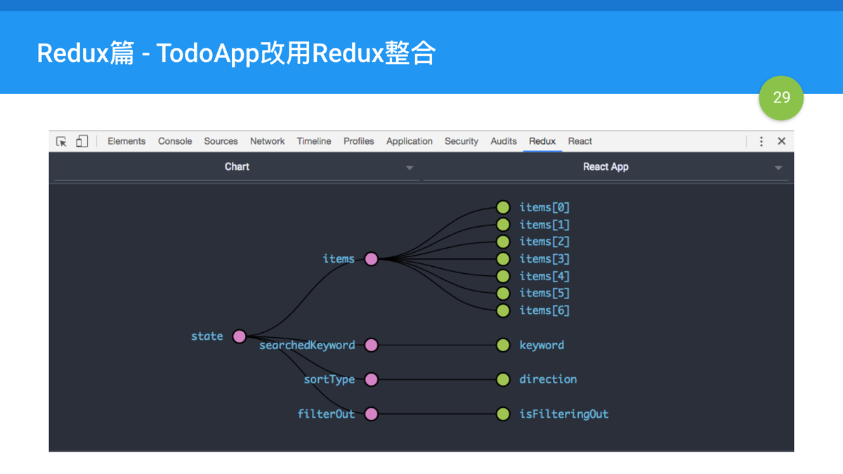 今天的主題是在Redux中的最後一篇,我們將把之前React篇最後完成的TodoApp,改用Redux來管理應用程式領域的狀態。